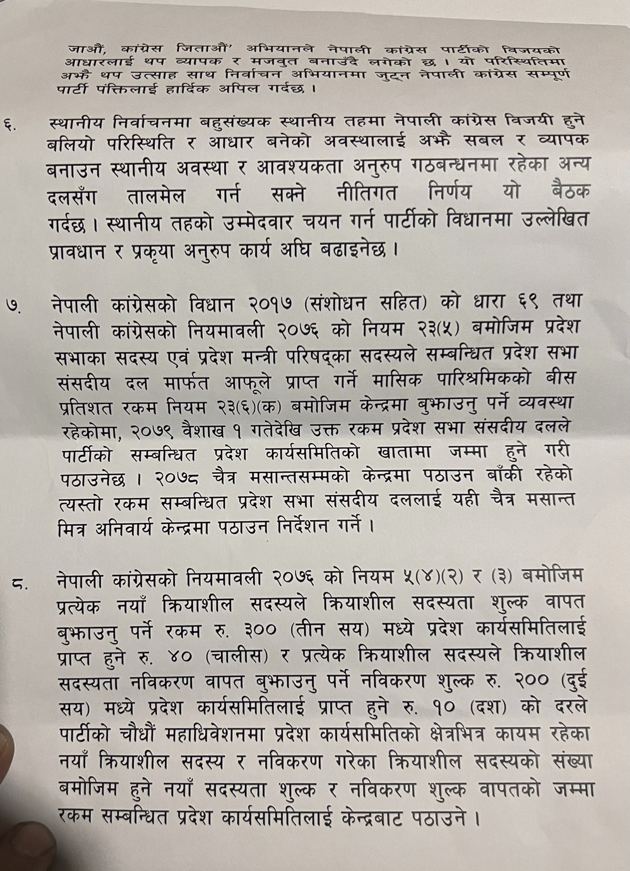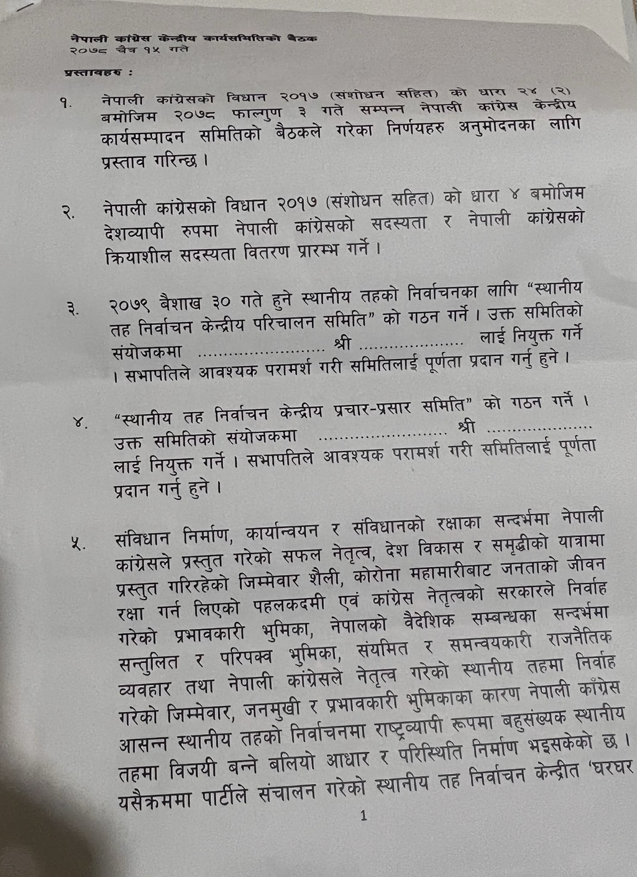 नेपाली कांग्रेसको मिटीङका निर्णयहरु