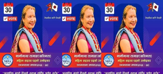 फुकुओका जापान, साउन १२। गैरआवासीय नेपाली संघ ९एनआरएनए० जापानको आगामी कार्यकाल २०२३(०२५ का केन्द्रीय महिला सदस्यमा जापानको फुकुओकाबाट नानी माया तामाङ (अस्मिता)ले उम्मेदारी दर्ता गराएका छन् । एनआरएनए जापानको आगामी कार्यकाल २०२३-०२५ कार्यकालको लागि केन्द्रीय महिला सदस्यमा नानी माया तामाङ (अस्मिता)ले उम्मेदवारी दर्ता गराएकी हुन। एनआरएनए लगायतका बिभिन्न संघसंस्थामा प्रमुख जिम्मेवारीमा रहेर काम गरी सक्नु … Continue reading जापानको फुकुओकाबाट एनआरएनए जापानको महिला सदस्यमा नानीमाया तामाङ्गको उम्मेद्धारी दर्ता, अत्यधिक मत दिई बिजयी बनाउन जापानबासी माझ अपिल