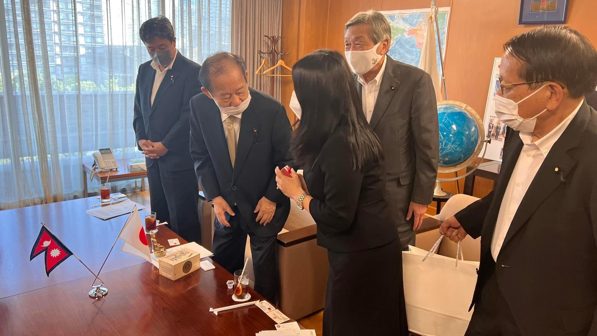 जापानको सत्तारुढ दल एलडिपी कार्यलयमा भएको भेटमा पूर्व महासचिव एव वरिष्ट नेता निकखाईसगको भेटले नेपाल र जापान विचको सम्बन्ध अझै प्रगाढ बनाएको अध्यक्ष प्रचण्डले बताएका छन । भेटमा नेपाली राजदूत दुर्गा बहादुर सुवेदी, उपनियोग प्रमुख अम्बिका जोशी सहितको सहभागिता रहेको थियो ।