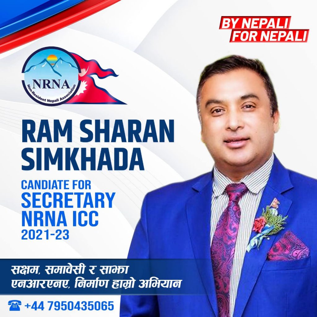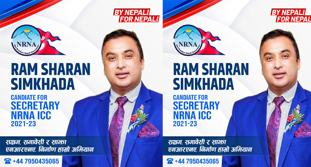 गैरआवासीय नेपाली संघ (एनआरएन) को १० औं महाधिवेशन नजिकिएसँगै चुनावी सरगर्मी बढ्न थालेको छ । महाधिवेशनका लागि एनआरएन अभियन्ताहरुले उम्मेदवारी घोषणा गर्दै आफ्नो दावेदारी प्रस्तुत गर्न थालेका छन । यसै सन्दर्भमा बेलायत निवासी धादिङ्गका रामशरण सिम्खडाले सचिव पदमा आफ्नो उम्मेदवारी घोषणा गरेका छन् । हाल एनआरएनको केन्द्रीय सदस्य तथा विधान संशोधन समितिको सहसंयोजक सिम्खडाले सचिव पदमा उम्मेदवारी घोषणा गरेका हुन् ।