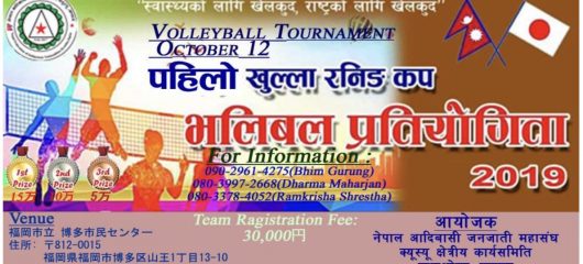 फुकुओका, सेप्टेम्बर 12। जनजातिहरूको छाता संगठन नेपाल आदिवासी जनजाति महासंघ, क्यूशु क्षेत्रीय कार्यसमिति फुकुओका, जापानले यही अक्टोबर १२ तारिक फुकुओकाको हाकातामा आयोजना गर्न गईरहेको पहिलो रनिंग कप भलीबल प्रतियोगिता २०१९ को सम्पूर्ण तयारी पुरा भएको आयोजक कमिटिले जानकारी गराएको छ । बिश्वभरी छरीएर रहेका जनजातिहरूको साझा संस्था नेपाल आदिवासी जनजाति महासंघ नेपाल सरकारबाट मान्यता प्राप्त … Continue reading जनजाति महासंघले गर्न लागेको भलीबल प्रतियोगिताको सम्पूर्ण तयारी पुरा