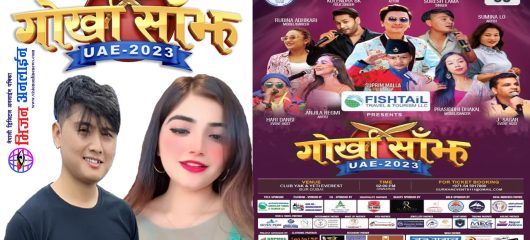 युएई, असोज २१ । नेपालको कला, संस्कृति तथा पर्यटन प्रबद्र्धनको लागि दुबईमा आयोजित गोर्खा साँझ २ भब्यताका साथ सम्पन्न भएको छ । आज अक्टोबर ८ तारिकको दिन आयोजना गरिएको गोर्खा साझ २ कार्यक्रममा नेपालबाट चर्चित कलाकार तथा नायक पल शाह, पछिल्लो समय चर्चाको शिखरमा रहेका नेपाली गायक सुरेश लामा, चर्चित गायिका एन्जिला रेग्मि, डान्सर तथा … Continue reading युएईमा सम्पन्न गोर्खा साँझ कार्यक्रममा पाकिस्तानी चर्चित टिकटकर डा.आलिया र गायक सुरेश लामाको चर्चा, फ्यानहरूको ईच्छा पुरा