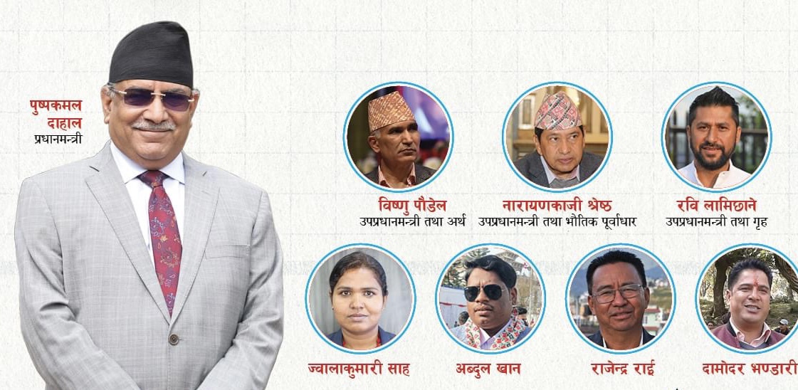 प्रधानमन्त्री पुष्पकमल दाहालले ८ सदस्यीय मन्त्रिपरिषद गठन गरेका छन् । प्रधानमन्त्री प्रचण्डले ३ उपप्रधानमन्त्री र ४ मन्त्रीसहित ८ सदस्यीय मन्त्रिपरिषद गठन गरेका छन् ।