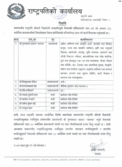 राष्ट्रपतिद्वारा जारी विज्ञप्ति