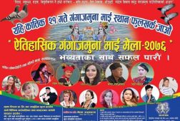 धादिङ्ग, कार्तिक, २२ । धादिङ्ग जिल्लाको उत्तरी भेग फुलखर्क, गंगाजमुना गाउपालिकामा अवस्थित गंगाजमुना माई मेला हिजो बिबिध कार्यक्रम गरी सम्पन्न भएको छ । धादिङ्गको उत्तरी भेगमा रहेको उक्त गंगाजमुना माईको जात्रा प्रतेक बर्ष कार्तिक शुक्लपक्ष दशमीको दिन मनाउदै आएको छ । हिजो कार्तिक २१ गते दशमीको दिन पर्ने गंगाज...