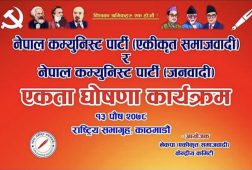 काठमाडौं, पुस १३ । नेकपा एकीकृत समाजवादी पार्टी र नेपाल कम्युनिष्ट पार्टी जनवादीबीच पार्टी एकता हुने भएको छ । मंगलवार काठमाडौंको राष्ट्रिय सभागृहमा आयोजित एक कार्यक्रमकाबीच पार्टी एकता घोषणा हुने एकीकृत समाजवादी पार्टीका उपमहासचिव डा विजयकुमार पौडेलले जानकारी दिनुभएको छ । एकता घोषणा कार्यक्रमलाई एकीकृत समाजवाद...