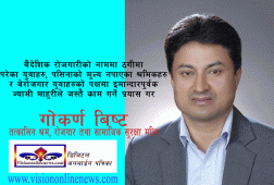 काठमाडौं मंसिर, ५ । उर्जा मन्त्रि हुँदा कमाएको लोकप्रियतालाई आत्मसाथ गर्दै श्रम, रोजगार तथा सामाजिक सुरक्षामन्त्रीको रुपमा काम गर्दै आएका गोकर्ण बिष्टलाई प्रधानमन्त्रि के.पि शर्मा ओलिले मन्त्रिपदबाट हटाएको छ । "जति दिन श्रममन्त्रीको रुपमा रहेँ - वैदेशिक रोजगारीको नाममा ठगीमा परेका युवाहरु, पसिनाको मूल्य...
