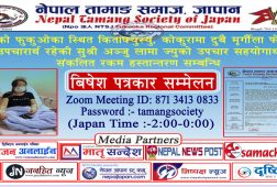 दुबै मृर्गौला पिडित अञ्जु लामा उपचारार्थ संकलित रकमको जानकारी गर्न तामाङ्ग समाज क्युस्युद्धारा पत्रकार सम्मेलनको आयोजना गर्दै