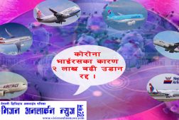 कोडिक–९ नामक कोरोना भाईरसका कारण २ लाख बढी उडान रद्द, अर्थतन्त्रमा ठुलो धक्का