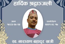 जापान, भदौ १ । जापानमा फेरि अर्को एकजना नेपालीको मृत्यु भएको छ । ओसाकामा कुक भिषामा कार्यरत गुल्मी ज़िल्ला डासिकोट घर भएका ३६ वर्षीय नारायण बहादुर खत्रीको मंगलबार मृत्यु भएको हो । करिब २ वर्ष अघिमात्र जापान आएका खत्री लामो समयदेखि मुटुसम्बन्धी बिरामी रहेको र हाल उपचारका क्रममा अस्पतालमै मृत्यु भएको गैर आवासीय...