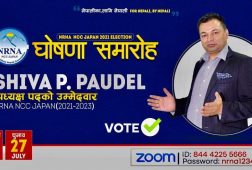 जापान, असार २५ । गैर आवासीय नेपाली संघ जापानको २०२१-२०२३ कार्यकालको लागि नया नेतृत्व चयनको लागि यही जुलाई २५ र २७ गते निर्धारण गरीएको छ । अधिवेशन नजिकिदै गर्दा प्रत्यासीहरूको चुनावी प्रचार प्रसार र उम्मेद्वारी घोषणाले तिब्रता पाएको छ । यसै सन्दर्भमा आगामी२०२१-२०२३ कार्यकालको लागि अध्यक्षको प्रत्यासी शिव प...