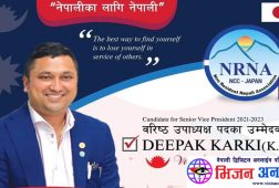 एनआरएनए जापानको बरिष्ठ उपाध्यक्ष पदमा नागोयाबाट दिपक कार्कीको उम्मेद्धारी घोषणा
