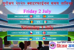 युरोकप २०२० को क्वाटरफाइनल समीकरण पूरा, खेल जुलाई २ र ३ तारिक हुने