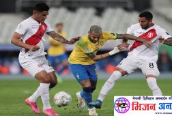एजेन्सी, असार, २२ । साविक विजेता ब्राजिल घरेलु मैदानमा भइरहेको ४७औं संस्करणको कोपा अमेरिका फुटबलको फाइनलमा प्रवेश गरेको छ । मंगलबार बिहान भएको पहिलो सेमिफाइनलमा पेरुलाई १-० ले पराजित गर्दै ब्राजिल उपाधि नजिक पुगेको हो । निल्टन सान्तोस मैदानमा भएको खेलमा ब्राजिलका लागि लुकास पाक्वेटाले पहिलो हाफमा गोल गरे । ...