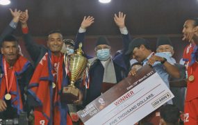 बंगलादेशलाई पराजित गर्दै नेपालले जित्यो थ्री नेसन्स कप फुटबलको उपाधि