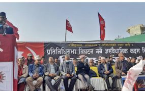 धादिङ्गमा सरकारको प्रतिगमन बिरुद्ध बिशाल जनप्रदर्शन, संसद बिघटन संबिधान बिरुद्धको कु भएको नेता भट्टराईको भनाई