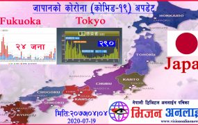जापानमा कोरोना संक्रमण जोखिम पुनः बढ्यो, टोक्योमा एकैदिन २२४ जना कोरोना संक्रमण पुष्टि
