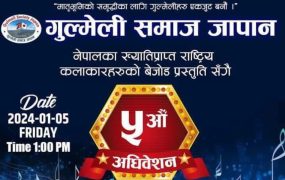 गुल्मेली समाज जापानले राष्ट्रिय कलाकारहरुको उपस्थितिमा जनवरी ५ तारिक पाचौं अधिबेसन गर्दै