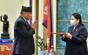 प्रचण्डद्वारा प्रधानमन्त्रिमा दाबी पेश, एमाले सहित ७ दलका १६७ सांसदको समर्थन प्राप्त