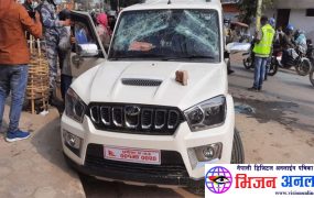राष्ट्रिय सभा निर्वाचनमा भाग लिन हिडेका मेयर सवार सरकारी गाडी जनकपुरमा तोडफोड, मेयर सामान्य घाइते