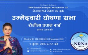 एनआरएनए युकेको अध्यक्ष पदमा रोजिना प्रधान राईको उम्मेद्धारी घोषणा, भोलि जुम मार्फत औपचारिक घोषणा गर्ने