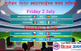 युरोकप २०२० को क्वाटरफाइनल समीकरण पूरा, खेल जुलाई २ र ३ तारिक हुने