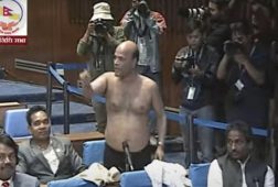 काठमाडौं, वैशाख २५, । स्वतन्त्र सांसद अमरेश कुमार सिंह प्रतिनिधि संसद बैठकमै अर्धनग्न बनेका छन् । सोमबार प्रतिनिधिसभाको बैठकमा सांसद सिंहले आकस्मिक समय माग गरेका थिए । सभामुखले समय नदिएपछि त्यसको विरोधमा उनले सर्ट र गञ्जी खोलेर विरोध जनाएका हुन् । संसद बैठकमा सांसद अर्धनग्न भएपछि सभामुख देवराज घिमिरेले स...