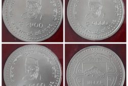 काठमानडौ भाद्र २५। शताव्दी पुरुषको सम्मानमा वाङमय शताब्दी पुरूष डा. सत्यमोहन जोशीको मुहार अङ्कित चाँदीका सिक्का रू. २५००।-, रू. १०००।- र धातुको सिक्का रू. १००।- नेपाल राष्ट्र बैंकबाट आज प्रकाशनमा आएको छ । आजको दिन हाम्रो विशेष खुसीको दिन हो ।नेपालको इतिहासमा ज्यूँदो मानिसका नाउँमा सिक्का प्रकाशनमा आएको यो पहिलो...